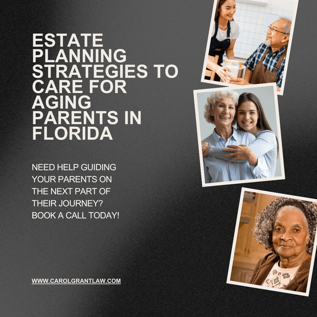 that support them along their journey to retirement and beyond. These strategies address long-term care and living arrangements for our parents’ well-being and peace of mind. We explore why care for aging parents in Florida, with regards to estate planning is necessary to preserve their dignity, security and legacy.